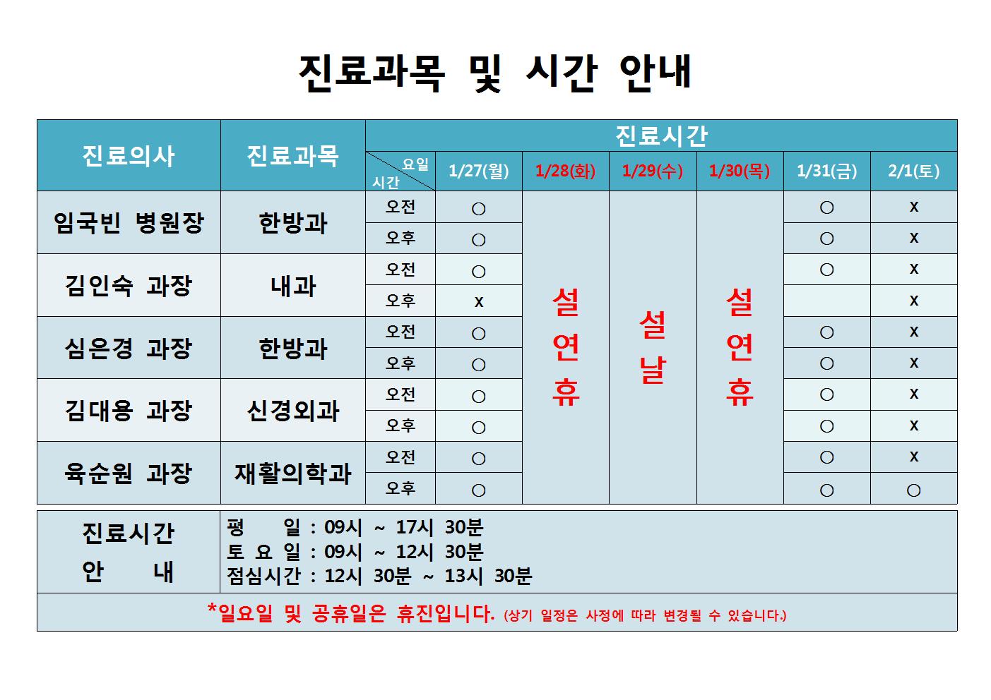 * 진료일정 참고하여 병원 이용 시 차질이 없으시길 바랍니다.