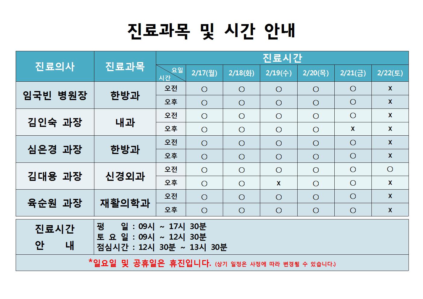 * 진료일정 참고하여 병원 이용 시 차질이 없으시길 바랍니다.