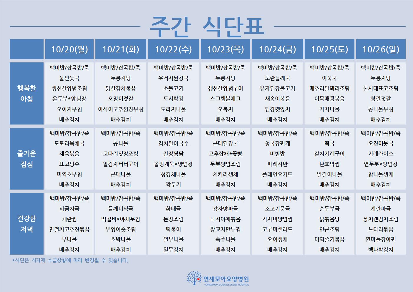 주간식단표 안내드립니다.