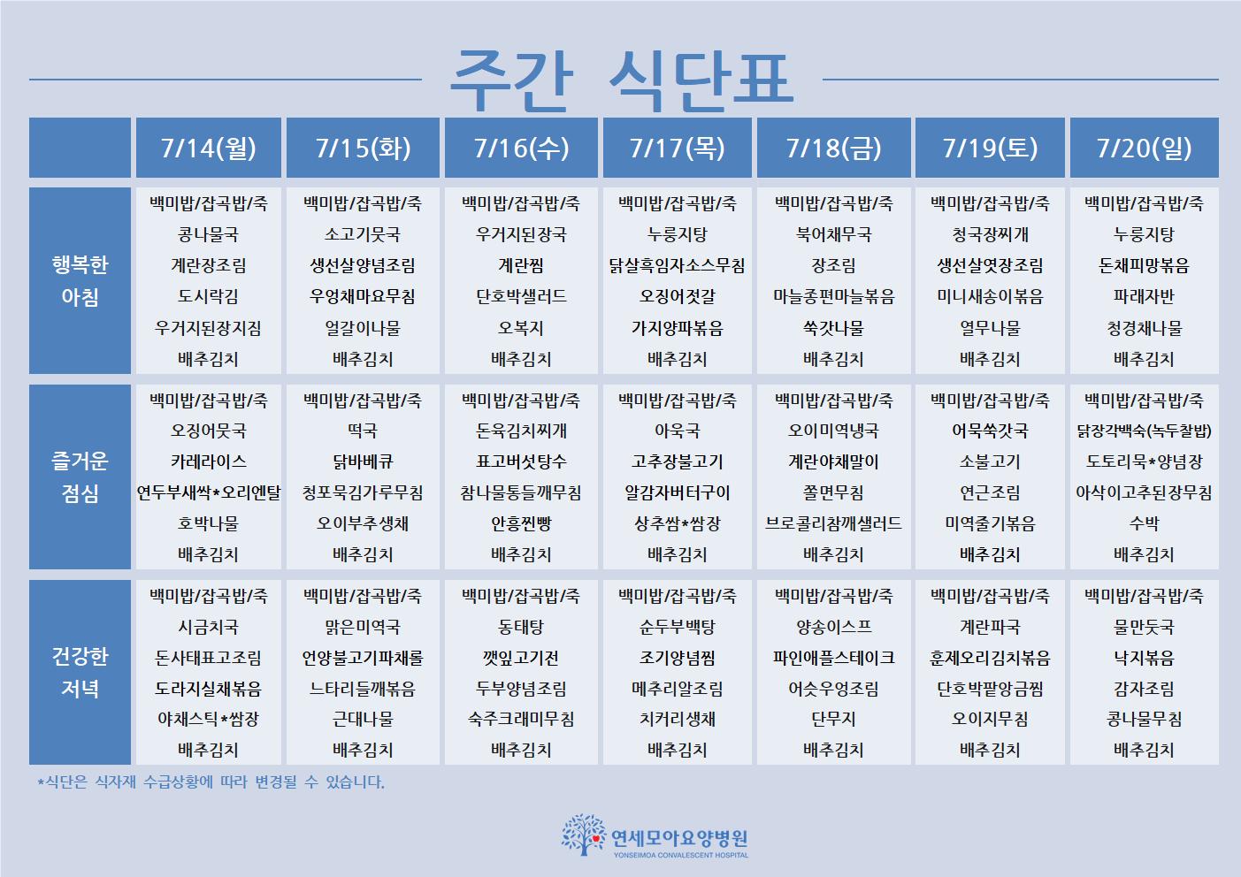 주간식단표 안내드립니다.
